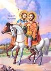V تادرس المشرقي الأمير https://encrypted-tbn0.gstatic.com/i...RBPAQsaLSbOsIB وُلد في صور بسوريا سنة 275م، وقد دعاه الأقباط "تادرس المشرقي St. Theodore the Oriental " لتميزه عن القديس تادرس الشطبي، إذ كانا كلاهما أميرين وقائدين في الجيش الروماني، تعتز بهما الكنيسة القبطية. كان والده صدريخوس Sadrikhos وزيرًا في أيام نوماريوس، ووالدته بَطريقَة Patricia أخت الوزير باسيليدس. إذ مات نوماريوس في حرب الفرس وكان ابنه يسطس مشغولاً مع الجند قام صدريخوس ونسيبه باسيليدس بتدبير أمور المملكة حتى ملك دقلديانوس الذي تزوج بابنة نوماريوس أخت يسطس. عُرف تادرس بشجاعته وقدرته العسكرية كقائدٍ ماهرٍ ونبيلٍ، كان منهمكًا في الحرب عند نهر أنطوش أثناء وفاة نوماريوس وتولى دقلديانوس الحكم. وقد شاهد هذا القائد الرؤيا التالية: رأى كأن سلمًا يرتفع من الأرض إلى السماء، وعند قمة السلم كأن الرب نفسه جالس على منبر عظيم وحوله ألوف ألوف وربوات ربوات يحيطون به وهم قيام يسبحونه. نظر أيضًا كأن تنينًا عظيمًا رابضًا تحت السلم. عندئذ قال له الجالس على العرش: "أتريد أن تكون ابنا لي؟" فقال له: "من أنت يا سيدي؟ " أجابه: "أنا يسوع كلمة الله، وسوف يُسفك دمك على اسمي". ثم رأى أحد الوقوف حوله قد أخذه وعمده في معمودية نار، وغطسه ثلاث مرات فصار كله نارًا مثله مثل كل الواقفين حول الرب. في محبة عجيبة قال تادرس: "يا سيدي اشتهي أن لا أفارق صديقي لاونديوس (العربي)"، فأجابه ليس فقط لا يفارق لاونديوس بل وأيضًا بانيقورس الفارسي. ثم رأى كأن هذين الرجلين لاونديوس وبانيقورس قد اُختطفا وعُمدا مثله وسُلما له. عندئذ قام الأمير تادرس من نومه فرحًا وروى ما رآه لصديقه لاونديوس الذي شاركه فرحته. التقى الاثنان ببانيقورس الفارسي، والعجيب أنه أخبرهما بأنه قد شاهد نفس الرؤيا، وكان دقلديانوس قد أقام صلحًا مع فارس. استدعى دقلديانوس الأمير ليخبره بأمر المصالحة مع فارس، وإذ علم الأمير بارتداد دقلديانوس طلب من جنده أن من أراد الاستشهاد على اسم السيد المسيح فليأت معه، وقد انضم إليه كثيرون. انطلق الأمير مع صديقه لاونديوس إلى إنطاكية، وكان والده صدريخوس قد تنيح، فاستقبله الملك بحفاوة، وإذ طلب مشاركته في العبادة الوثنية رفض معلنًا إيمانه بالسيد المسيح. سلمه الملك للوالي لكي يحاكمه ويعذبه. أصدر الوالي أمره بنفيه إلى Ctsiphon حيث عذب هناك، لكن الرب أرسل إليه رئيس الملائكة ميخائيل ليسنده ويقويه. أخيرًا نال إكليل الشهادة في 12 طوبه سنة 306م. بعد استشهاده تأثر به كثير من كهنة ابوللون، وأعلنوا أيمانهم بالسيد المسيح، وقدموا حياتهم ذبيحة حب لله، فانطلقوا يشاركون القديس إكليله. Rene Basset: Le Synaxaire Arabe, Toubeh 12. |