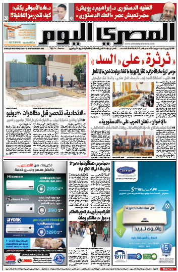 شاهد الصفحة الاولى من جريدة المصرى اليوم غدا
