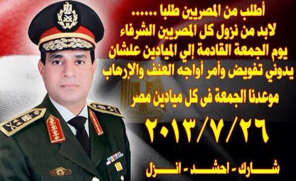 ابو حامد يعرض صوره للفريق السيسي و دعوه للشعب المصري على تويتر http://img.ch-news.com/article137469...load%20(3).jpg https://pbs.twimg.com/media/BP9YV5eCMAE9x8r.jpg:large قوم يا مصري بلدك تنادي عليك أنقذ مصر من الإرهاب تويتر |
