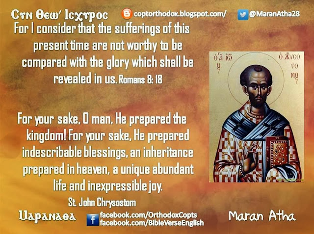 For I consider that the sufferings of this present time are not worthy to be compared with the glory which shall be revealed in us. (Rom. 8: 18) For your sake, O man, He prepared the kingdom! For your sake, He prepared indescribable blessings, an inheritance prepared in heaven, a unique abundant life and inexpressible joy. (St. John Chrysostom) |