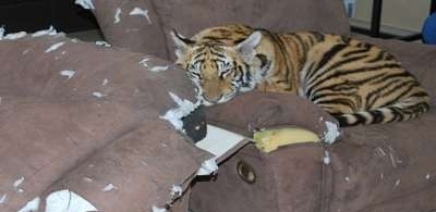 ويختلف الناس فى أذواقهم، فهناك من يفضّل اقتناء الكلاب ، وآخرون يعشقون القطط، فيما يستريح آخرون للعيش مع الفئران. لكن .. إحضار نمرٍ صغير إلى المنزل يعد أمرا غير مألوف، بل خطير أيضا . بالرغم من خطورة الأمر، أحضر "مايكل جاميسون" وصديقته "جاكى سميت" نمرا بنغاليا صغيرا - لم يتجاوز الـ 9 أسابيع- إلى بيتهما فى "براكبان" بجنوب إفريقيا . يقول مايكل: "إنزو – النمر البنغالى ــ ليس سوى قطٍ صغير مثل باقى القطط، يحب اللعب واللهو وجذب الانتباه إليه، فهو يحب النوم والخمش بمخالبه فى أثاث المنزل" . وأضاف: لقد صار إنزو فردا من عائلة مايكل الصغيرة، يقضى يومه بين الجرى والالتفاف حول طاولة المطبخ والقفز فوقها، ثم يأخذ قيلولة فوق الشيزلونج" . وتابع: "اللعب مع نمر يعد أمرا خطيرا، خاصة عندما يهاجمك فى المكان الخاطئ، فقد لا يعضك لكنه مازال بإمكانه أن يحدث خدوشا بأسنانه تسبب نزيفا بعض الأحيان" . استطرد مايكل حديثه: "وجود إنزو فى المنزل شئ غاية فى الروعة، لايمكن أن أقارنه بأى شئ أخر، فمعه كل يوم مختلف، كل يوم مغامرة جديدة" . |
