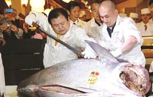 بلغ وزن سمكة التونا 222 كيلوغراماً وتستخدم هذه السمكة ذات اللحوم الحمراء والزهرية اللون في إعداد أطباق السوشي والساشيمي ! يعني مسالة استثمار وليس استعراض