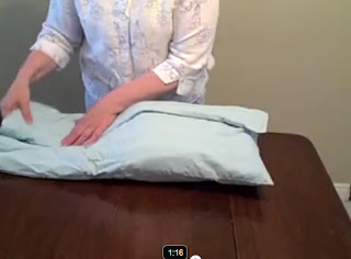 طبقي الملايه عادي في ناحيه و سيبي كيس المخده الصغير ممكن تكويه لو تحبي و ممكن تسيبيه مش مشكله و دخلي الطقم عادي جوه الكيس زي الصوره