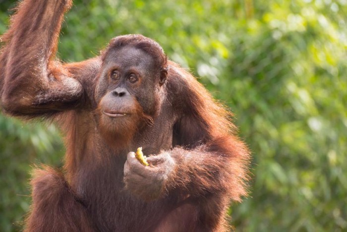 القرد روك، وهو قرد من فصيلة إنسان الغاب المهددة بالانقراض، ويعيش في حديقة إنديانابوليس للحيوانات، كان موضوع بحث لغوي تم إجراؤه عام 2012 من قبل جامعة دورهام. خلال البحث، لوحظ أن روك كان قادرًا على تعلم أصوات جديدة، وكان أشهر ما ينطقه كلمة “wookiees”. ولم يتمكن أن كائن من فصيلة إنسان الغاب بالكلام سوى القرد روك.