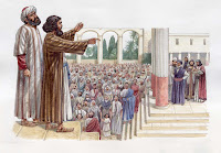 باب التوبة مفتوح للجميع https://3.bp.blogspot.com/_zOe0CdZeye...200/412926.JPG أع 13 : 13 – 52 باب التوبة مفتوح للجميع 13 ثم اقلع من بافوس بولس ومن معه واتوا الى برجة بمفيلية.واما يوحنا ففارقهم ورجع الى اورشليم. 14 واما هم فجازوا من برجة واتوا الى انطاكية بيسيدية ودخلوا المجمع يوم السبت وجلسوا. 15 وبعد قراءة الناموس والانبياء ارسل اليهم رؤساء المجمع قائلين ايها الرجال الاخوة ان كانت عندكم كلمة وعظ للشعب فقولوا. 16 فقام بولس واشار بيده وقال ايها الرجال الاسرائيليون والذين يتقون الله اسمعوا. 17 اله شعب اسرائيل هذا اختار اباءنا ورفع الشعب في الغربة في ارض مصر.وبذراع مرتفعة اخرجهم منها. 18 ونحو مدة اربعين سنة احتمل عوائدهم في البرية . 19 ثم اهلك سبع امم في ارض كنعان وقسم لهم ارضهم بالقرعة. 20 وبعد ذلك في نحو اربع مئة وخمسين سنة اعطاهم قضاة حتى صموئيل النبي. 21 ومن ثم طلبوا ملكا فاعطاهم الله شاول بن قيس رجلا من سبط بنيامين اربعين سنة. 22 ثم عزله واقام لهم داود ملكا الذي شهد له ايضا اذ قال وجدت داود بن يسى رجلا حسب قلبي الذي سيصنع كل مشيئتي. 23 من نسل هذا حسب الوعد اقام الله لاسرائيل مخلصا يسوع. 24 اذ سبق يوحنا فكرز قبل مجيئه بمعمودية التوبة لجميع شعب اسرائيل. 25 ولما صار يوحنا يكمل سعيه جعل يقول من تظنون اني انا.لست انا اياه لكن هوذا ياتي بعدي الذي لست مستحقا ان احل حذاء قدميه 26 ايها الرجال الاخوة بني جنس ابراهيم والذين بينكم يتقون الله اليكم ارسلت كلمة هذا الخلاص. 27 لان الساكنين في اورشليم ورؤساءهم لم يعرفوا هذا.واقوال الانبياء التي تقرا كل سبت تمموها اذ حكموا عليه. 28 ومع انهم لم يجدوا علة واحدة للموت طلبوا من بيلاطس ان يقتل. 29 ولما تمموا كل ما كتب عنه انزلوه عن الخشبة ووضعوه في قبر. 30 ولكن الله اقامه من الاموات. 31 وظهر اياما كثيرة للذين صعدوا معه من الجليل الى اورشليم الذين هم شهوده عند الشعب. 32 ونحن نبشركم بالموعد الذي صار لابائنا 33 ان الله قد اكمل هذا لنا نحن اولادهم اذ اقام يسوع كما هو مكتوب ايضا في المزمور الثاني انت ابني انا اليوم ولدتك. 34 انه اقامه من الاموات غير عتيد ان يعود ايضا الى فساد فهكذا قال اني ساعطيكم مراحم داود الصادقة. 35 ولذلك قال ايضا في مزمور اخر لن تدع قدوسك يرى فسادا. 36 لان داود بعدما خدم جيله بمشورة الله رقد وانضم الى ابائه وراى فسادا. 37 واما الذي اقامه الله فلم ير فسادا. 38 فليكن معلوما عندكم ايها الرجال الاخوة انه بهذا ينادى لكم بغفران الخطايا. 39 بهذا يتبرر كل من يؤمن من كل ما لم تقدروا ان تتبرروا منه بناموس موسى. 40 فانظروا لئلا ياتي عليكم ما قيل في الانبياء 41 انظروا ايها المتهاونون وتعجبوا واهلكوا لانني عملا اعمل في ايامكم.عملا لا تصدقون ان اخبركم احد به 42 وبعد ما خرج اليهود من المجمع جعل الامم يطلبون اليهما ان يكلماهم بهذا الكلام في السبت القادم. 43 ولما انفضت الجماعة تبع كثيرون من اليهود والدخلاء المتعبدين بولس وبرنابا اللذين كانا يكلمانهم ويقنعانهم ان يثبتوا في نعمة الله. 44 وفي السبت التالي اجتمعت كل المدينة تقريبا لتسمع كلمة الله. 45 فلما راى اليهود الجموع امتلاوا غيرة وجعلوا يقاومون ما قاله بولس مناقضين ومجدفين. 46 فجاهر بولس وبرنابا وقالا كان يجب ان تكلموا انتم اولا بكلمة الله ولكن اذ دفعتموها عنكم وحكمتم انكم غير مستحقين للحياة الابدية هوذا نتوجه الى الامم . 47 لان هكذا اوصانا الرب.قد اقمتك نورا للامم لتكون انت خلاصا الى اقصى الارض. 48 فلما سمع الامم ذلك كانوا يفرحون ويمجدون كلمة الرب.وامن جميع الذين كانوا معينين للحياة الابدية. 49 وانتشرت كلمة الرب في كل الكورة. 50 ولكن اليهود حركوا النساء المتعبدات الشريفات ووجوه المدينة واثاروا اضطهادا على بولس وبرنابا واخرجوهما من تخومهم. 51 اما هما فنفضا غبار ارجلهما عليهم واتيا الى ايقونية. 52 واما التلاميذ فكانوا يمتلئون من الفرح والروح القدس +++++++++++++++++++++++++++++++++++ ( ع ١٣ -41 الخدمة في أنطاكية بيسيدية) عند ذهاب بولس وبرنابا للشهادة للمسيح في مدينة جديدة، كان بولس