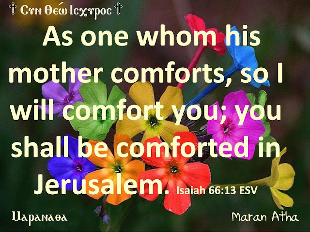 Verses https://3.bp.blogspot.com/-esycVV-nPk...iah+66;13E.jpg As one whom his mother comforts, so I will comfort you; you shall be comforted in Jerusalem. Isaiah 66:13 ESV |