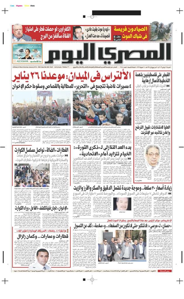 شاهد ما المكتوب اليوم فى الصفحة الاولى من جريدة المصري اليوم
