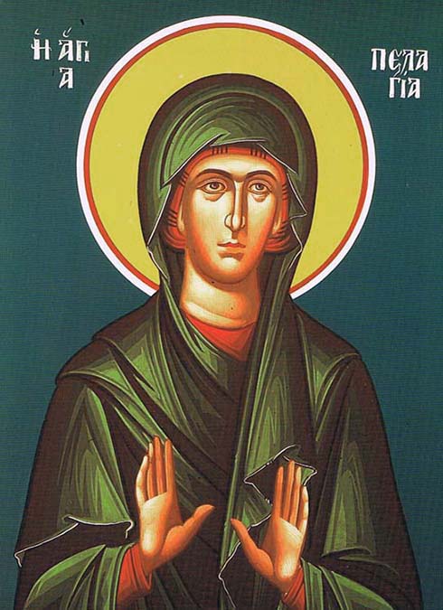ولدت* بيلاجية* على* الوثنية* في* مدينة* أنطاكية* العظمى،* وقد* أنعم* الله* عليها* بجمال* أخّاذ* سخّرته* لخدمة* شهوات* نفسها،* فتسبّبت* في* هلاك* الكثيرين*.