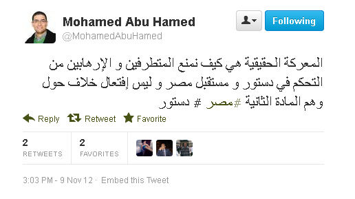 شاهد ماذا قال محمد ابو حامد الان علي تويتر الان عن مرسى والاخوان