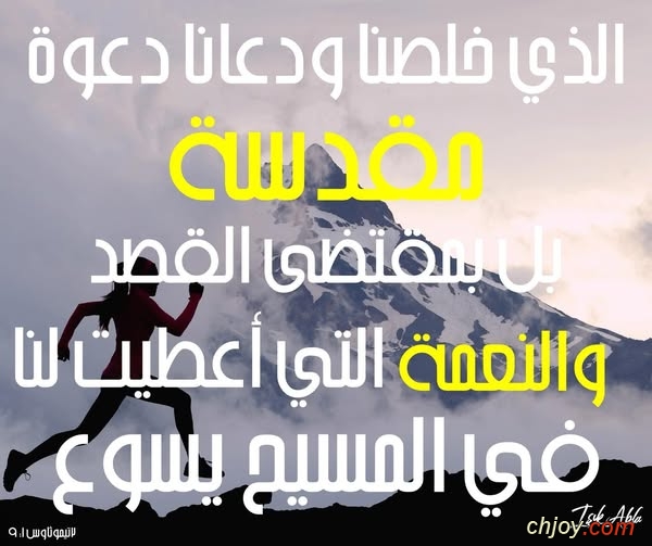 ![]() ![]() "الَّذِي خَلَّصَنَا وَدَعَانَا دَعْوَةً مُقَدَّسَةً ، لاَ بِمُقْتَضَى أَعْمَالِنَا، بَلْ بِمُقْتَضَى الْقَصْدِ وَالنِّعْمَةِ الَّتِي أُعْطِيَتْ لَنَا فِي الْمَسِيحِ يَسُوعَ قَبْلَ الأَزْمِنَةِ الأَزَلِيَّةِ،" (2تيموثاوس 1: 9) الله يدعوك، وإن سمعت وكنت صبورًا، سوف تتحقق هذه الدعوة. وعندما تستجيب لهذه الدعوة، فإنك تجسد معنى الطاعة للرب. نجاح الدعوة أمر متعلق بالرب ، أما دورنا فيتمثل في الطاعة. قد يكون الطريق صعبًا وليس معبّدًا . قد لا ننجح من المرة الأولى، وربما نكافح بشدة، وبالتالي فلا تسير الأمور كما نتمنى، لكن الله دائمًا لديه خطة. |